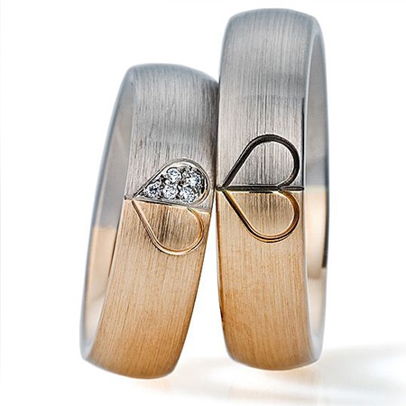 For couples who have a large budget, yellow gold or platinum is perfect. Also, an alloy of pink and white metal will look elegant.