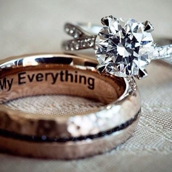 It will be a little easier to choose a line from a musical composition about love for engraving. It will be symbolic to perpetuate the line from the song of the first wedding dance. Perhaps the couple have a “own” song that they don’t want to talk about. Then perfect engraving with words from this composition in the inner side of the ring.