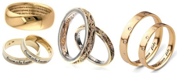 If you are guided by ancient beliefs, then put any inscriptions on the product is not recommended. The wedding ring should be as simple as possible so that subsequent family life is smooth.