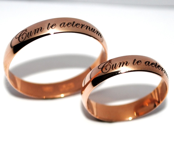 It happens that a very short phrase, for example, “Only you”, in Latin sounds like Noc solum observabis ut. It is quite long, which makes the letters on the ring less, and the cost of engraving is more expensive. Nevertheless, the newlyweds in this case give preference to beauty and symbolism.