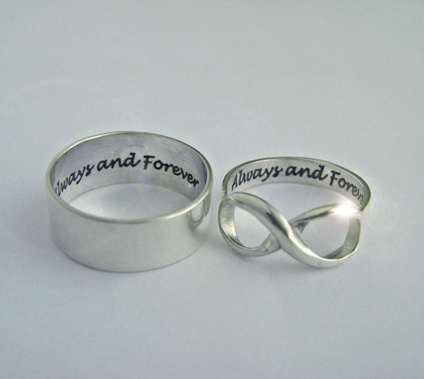 Words can be supplemented with engraving with the “infinity” sign in the form of a horizontal figure eight. If it is hard to come up with an inscription on your own, then the engraver will surely find samples of his works.