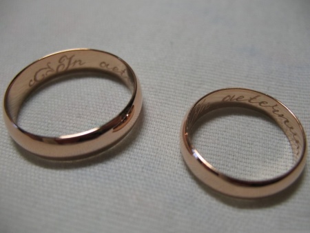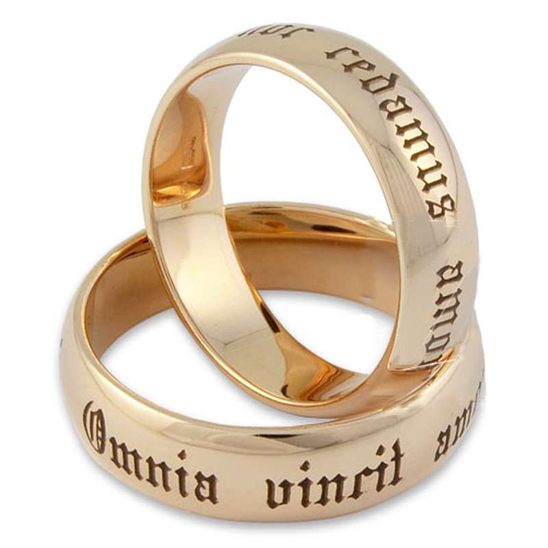 Popular became phrases for wedding decorations in Latin. Thus, it is symbolic to imprint a phrase in an eternal language on wedding rings symbolizing eternal love.