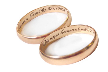 It is difficult for future spouses to find the optimal inscription for the ring. Wedding engraving is a very important step. No text can be erased without damage to the product. But competently and carefully thought-out phrase can always cheer up and save the situation even after the most violent quarrels, recalling romantic feelings at the beginning of a relationship.