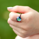 To get the decoration, the capsule of the required form of glass or quartz is filled with this liquid crystal substance. This capsule is the main decorative element of the chameleon ring.