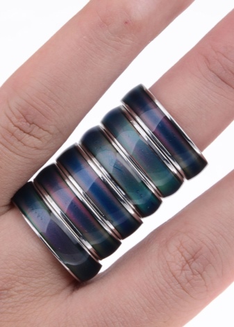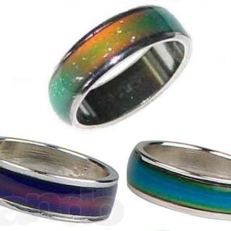 Chameleon rings are probably one of the most unusual accessories. This is a certain kind of costume jewelery, capable of changing its color depending on the temperature mode due to heat-sensitive elements. The red ring literally in a matter of minutes can turn into yellow, green, black or acquire any other shade.