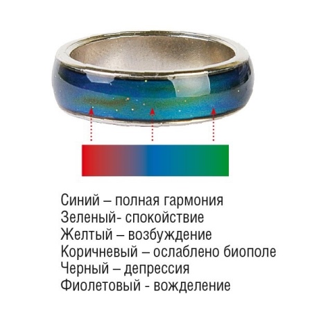 It is possible for yourself to develop an instruction for determining the emotional state, based on personal observations. It is possible that at some moments the tones of the liquid crystal elements will differ from the generally accepted ones. But do not forget that the ring changes color due to the physiological characteristics of the organism, and not psychological.