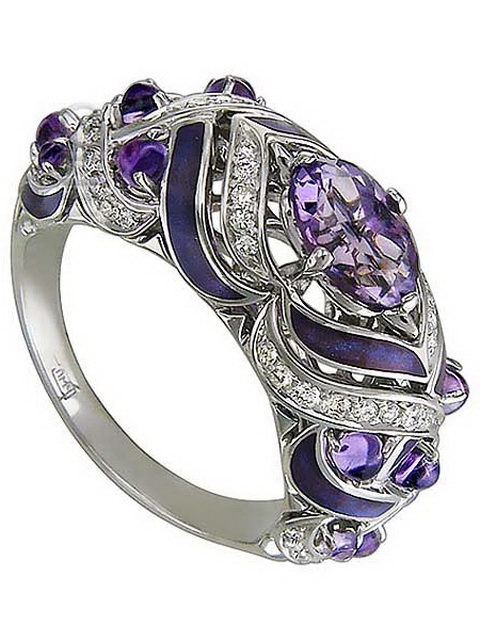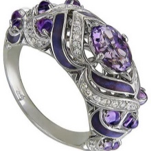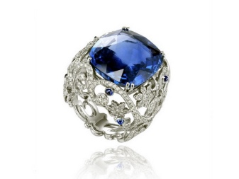 These luxury items can be found in the catalogs of the Russian brand Sokolov. The most popular models are rings with diamonds and sapphires of square, round and drop-shaped form.