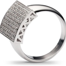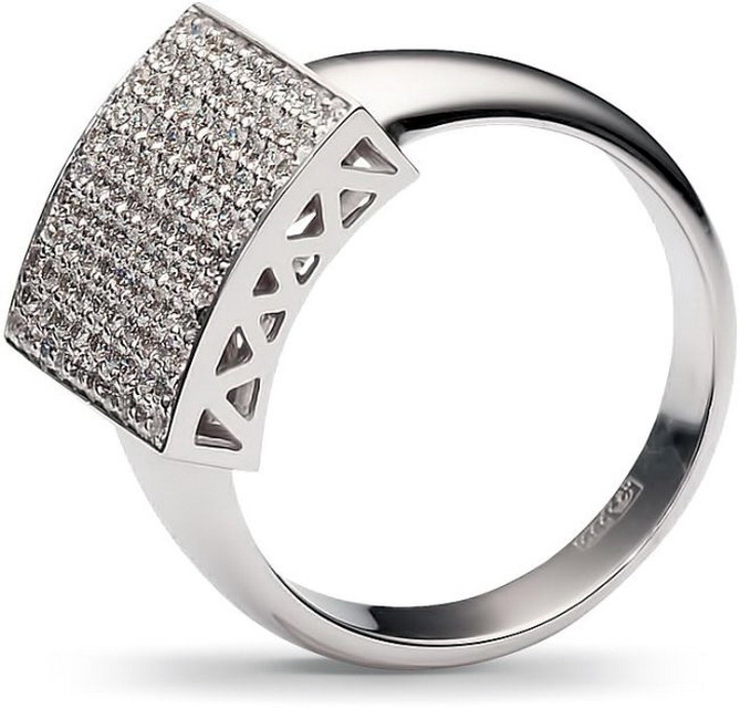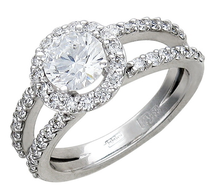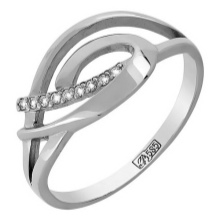 Beautiful models of white gold makes the Russian factory Sokolov. The range of such jewelry is very rich. These can be either classic variants with a round or square diamond, or luxurious products of various shapes with a scattering of stones.