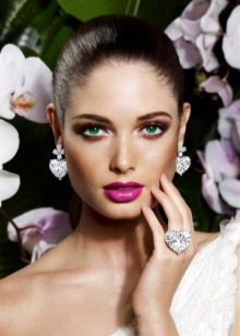 Charming models with a large pebble or a scattering of diamonds will be the perfect complement to wedding dresses. At present, these decorations look harmoniously not only on brides, but also on brides. Simply, the representatives of the stronger sex prefer more concise variants, in which there are no precious inserts.