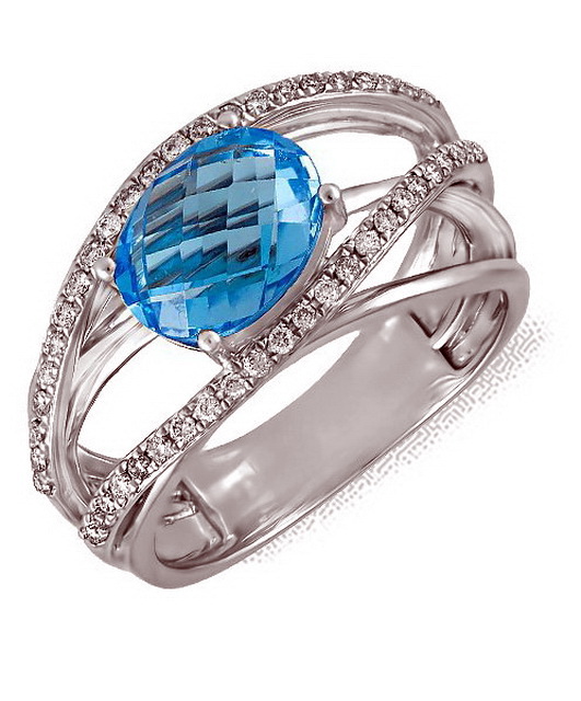 Diamonds look great against the background of white gold, but they can be complemented with other stones.