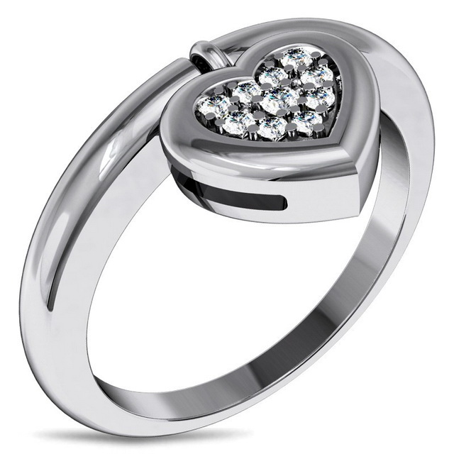 - According to the shape of the stone.Most often in the rings there are round pebbles, specimens in the form of a heart or “princess”. All these forms look amazing against the background of white gold. It can be both ordinary and wedding decorations. Slightly less common accessories with diamonds of other shapes. For example, oval, drop-shaped and "Marquis".