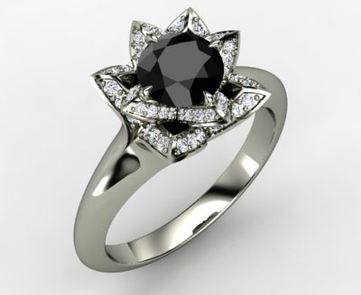 Rings with black diamonds are a bit cheaper. In quality and beauty, they are in no way inferior to white stones. But recently the cost of these accessories began to grow, as they are gaining popularity among consumers.