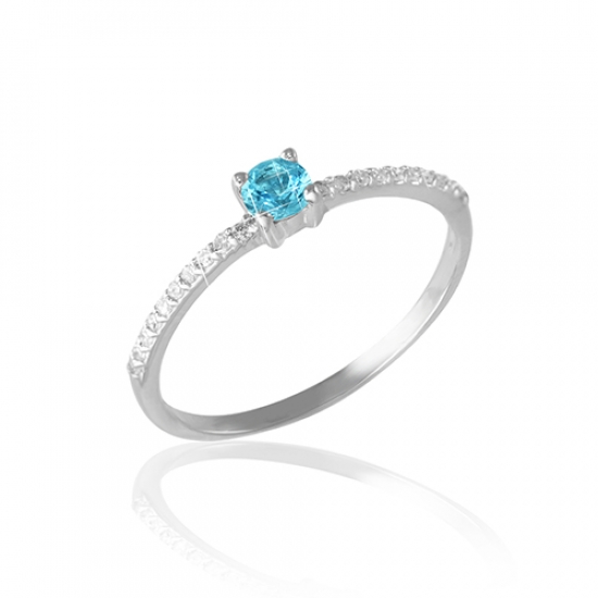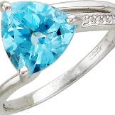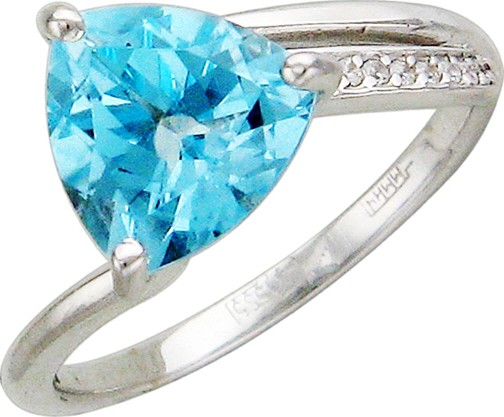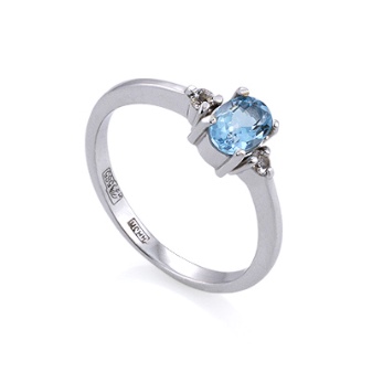 White gold looks harmoniously with topaz. This gem is distinguished by its external coolness. Air blue or deep blue color of topaz effectively looks in a tandem with precious metal. Ring with such detail will be the perfect solution for business and purposeful ladies.
