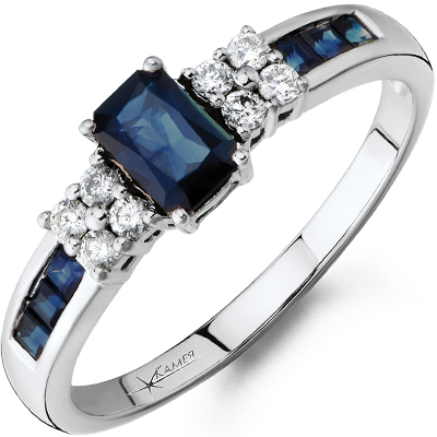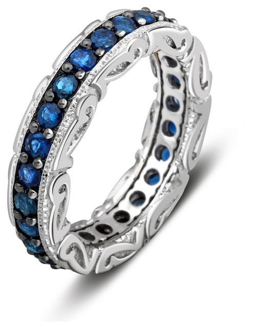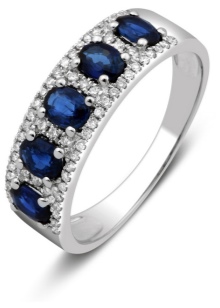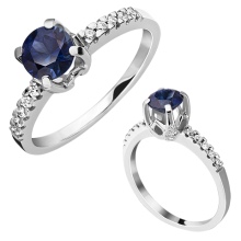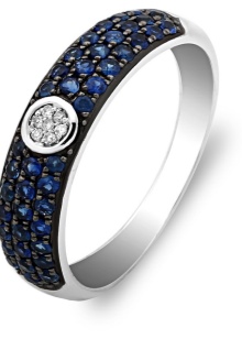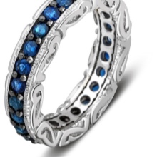 In white gold, sapphire looks incomparable. This stone has a deep blue color, which contrast and brightly stands out against the background of the precious metal of light tone. The most intense and attractive are the rings with sapphire, complemented with diamonds and cubic zirconias in color.