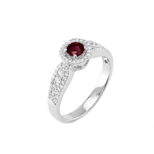 Accessories made of white gold with pomegranate will be an excellent solution for many ladies' looks, but if you decide to wear a ring with a business kit, then you should choose a model with a small and unobtrusive pebble.