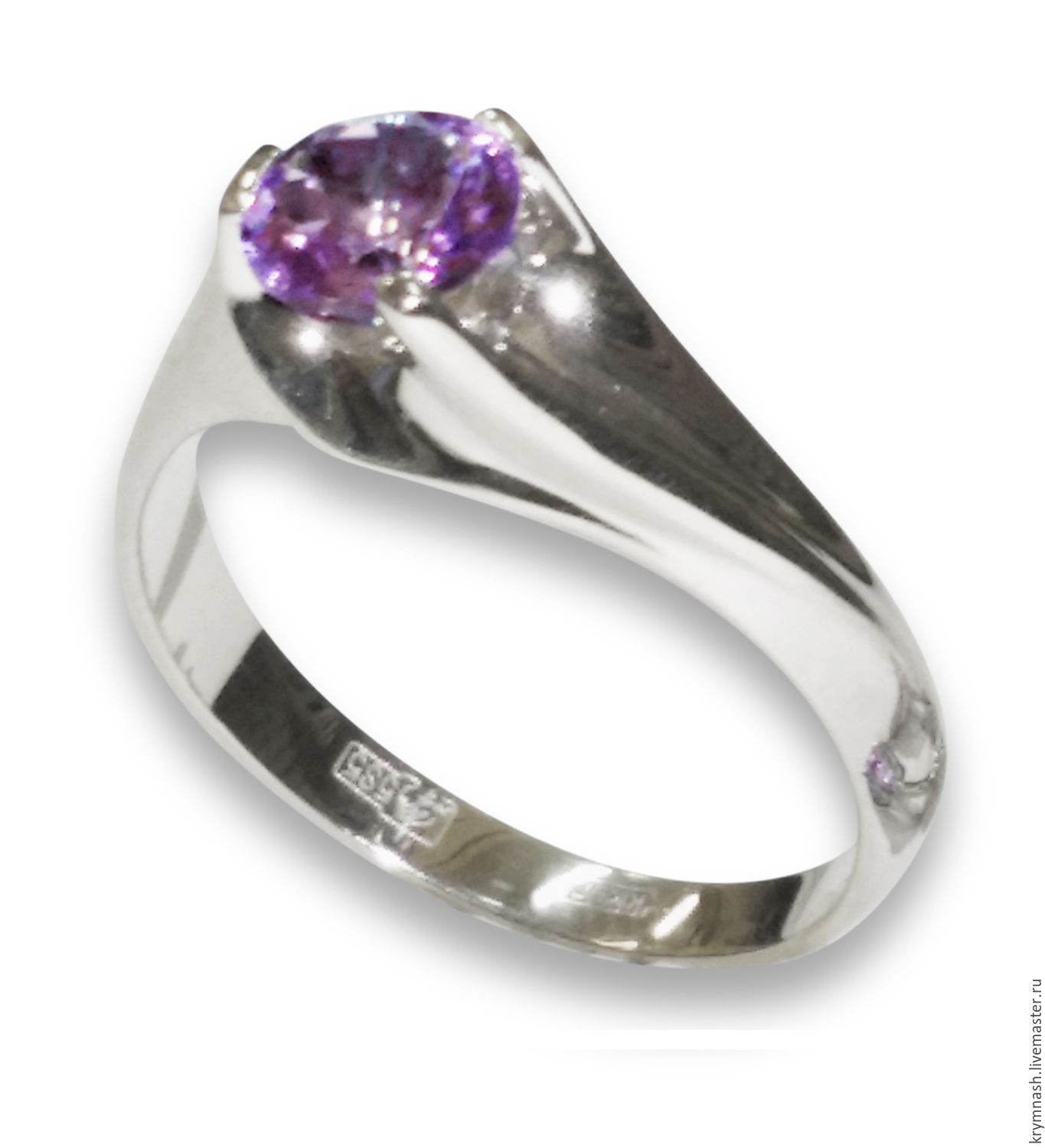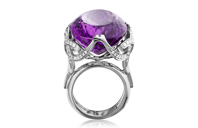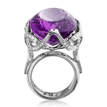 If you want to create a truly royal image, then you should look at the interesting gold rings with amethyst. This stone has a noble purple color, which can be almost transparent or dense and saturated. Against the background of white metal, the mineral looks very feminine and romantic.