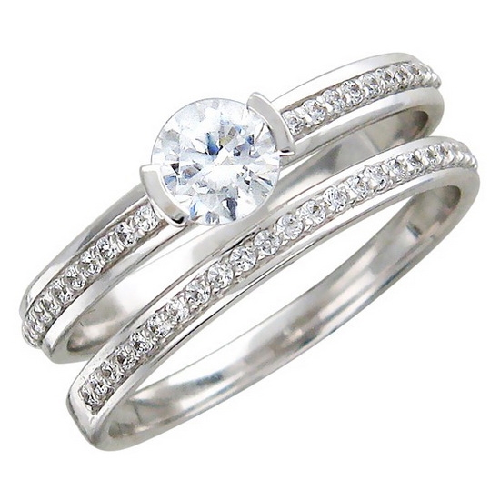 On the shelves of jewelry stores you can find a huge number of double rings. They are put on one finger. Similar pieces of white gold are often complemented with Swarovski crystals or diamonds.
