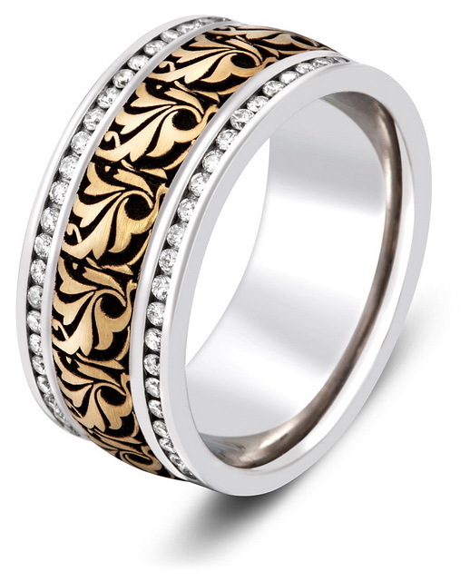 Beautiful and elegant model can be made of yellow or red gold, having on the surface of the track from white metal. Such combined decorations look very original and interesting, especially if they have a non-trivial design.