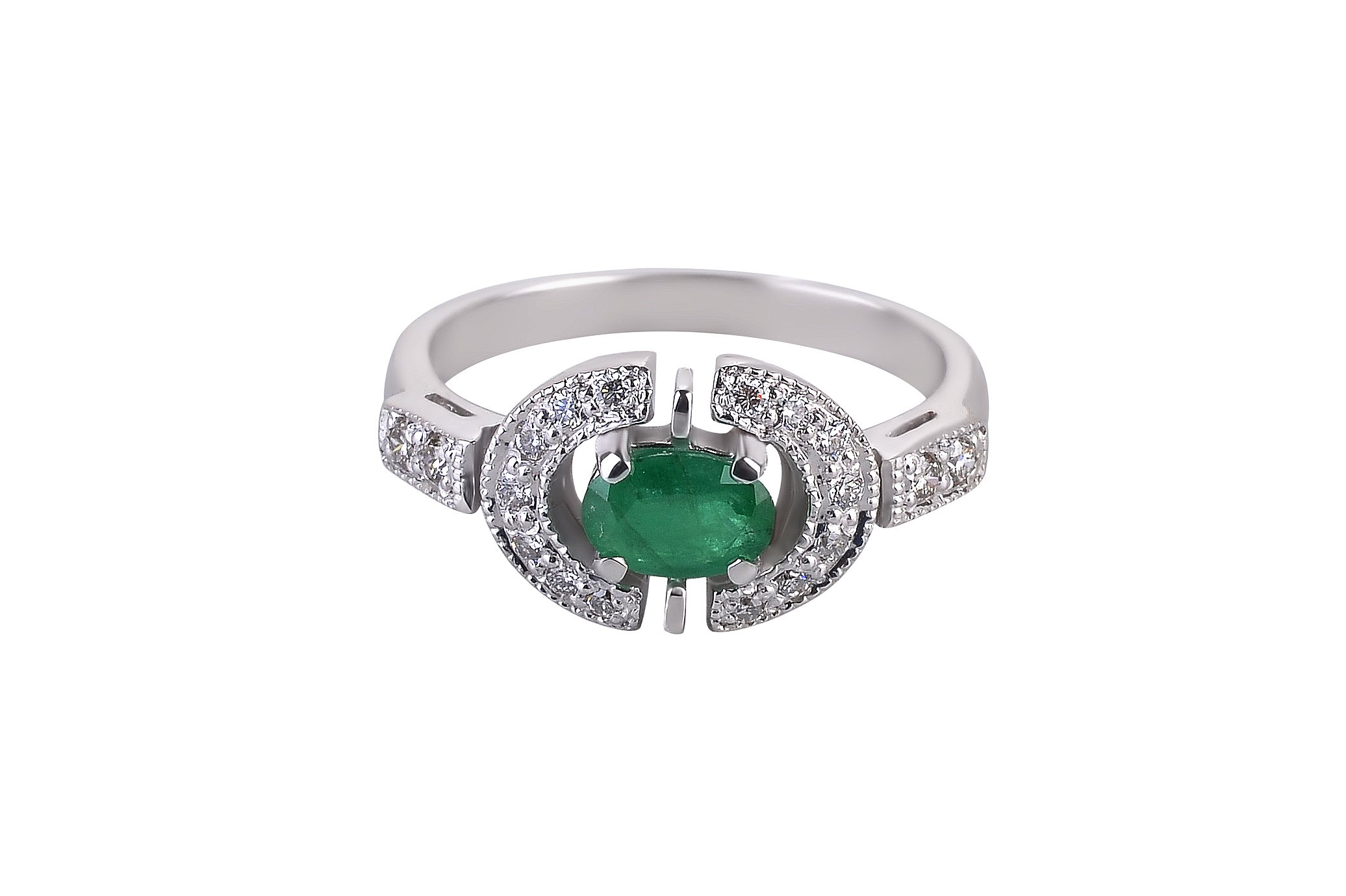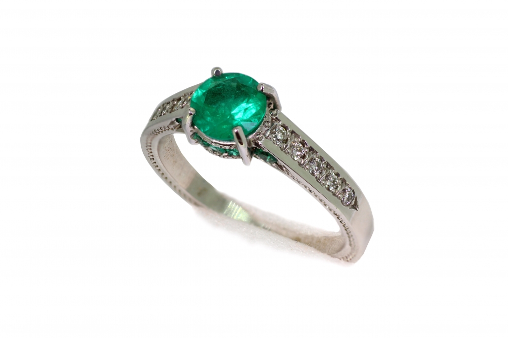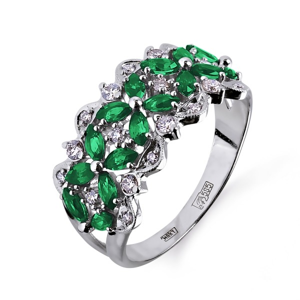 Natural green minerals blend beautifully with all metals that have a noble light. It can be not only white gold, but also silver or platinum. If you like calm and harmonious shades, then you should pay attention to the rings with emerald.
