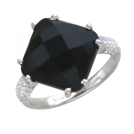 Stones may have different colors and shades. From black to pale pink. In white gold, almost any stone looks harmonious. For example, a mysterious onyx in black will look very solid and expensive in such a ring.