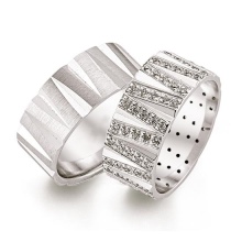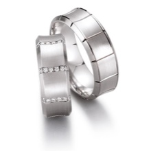 Newlyweds very often choose wedding rings made of platinum for a wedding. Their value is higher than that of gold models, since platinum is a more rare metal. Many like the practicality and style of these exquisite rings. Engraved options are characterized by durability.