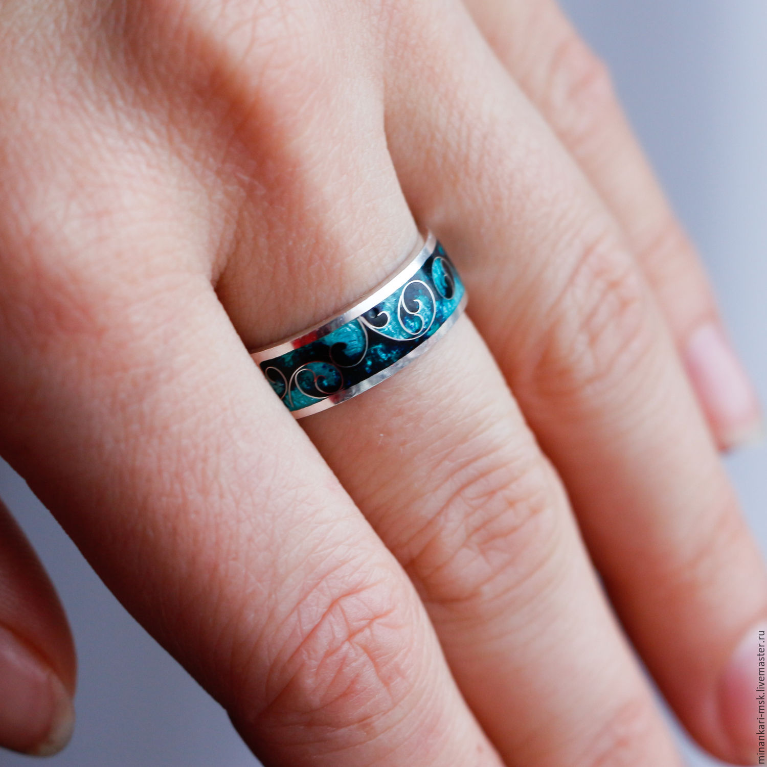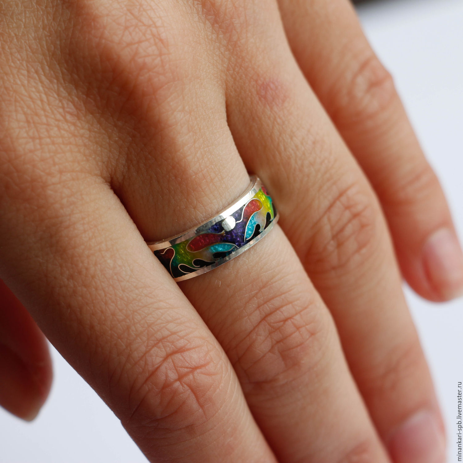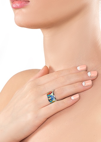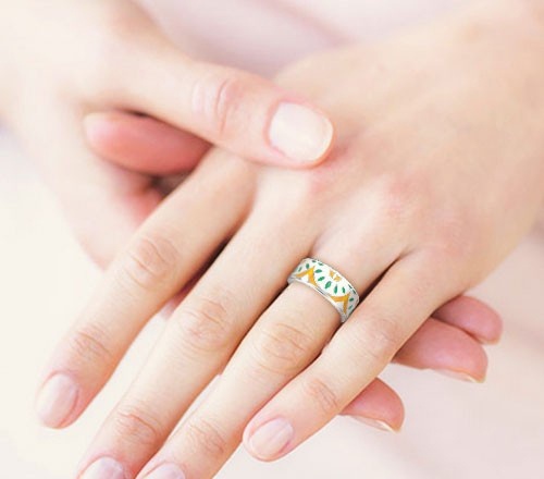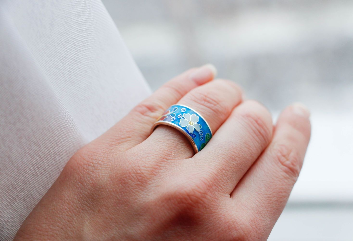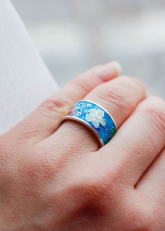 Enamel can be applied to the ring using two methods. The “cold” method allows the coating to dry even at low temperatures. More difficult is the “hot” method. Each product requires roasting up to 100 times, with the need temperature from 700 to 900 degrees. Jewelry made by this method are much more expensive.