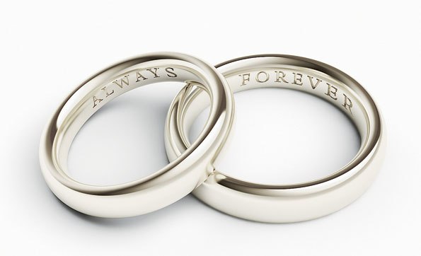 Very often on the rings put the initials of a loved one or a beautiful statement about eternal love. To create a family decoration that can be passed to your descendants, it is worth engraving the family name on the ring.