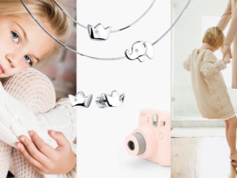 Children's ornaments should not be different pretentious design. Little women of fashion should get used to the fact that any accessories should be in harmony in style and form from an early age. Gentle ringlet with a small colored pebble will be enough for a children's pen.
