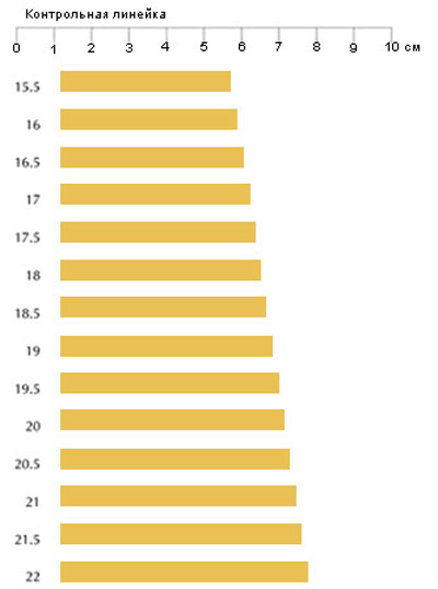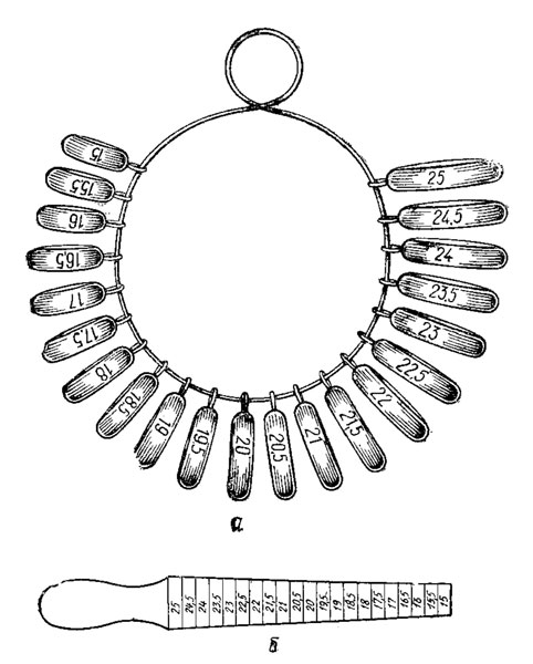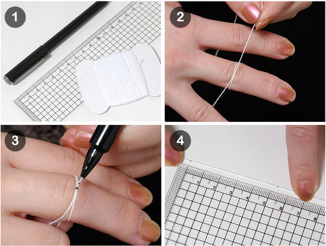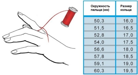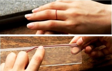 There is another method using thread. It is enough one turn on the girth of a finger to find out how many centimeters around the circumference. The resulting segment is applied to a special table.