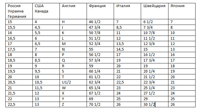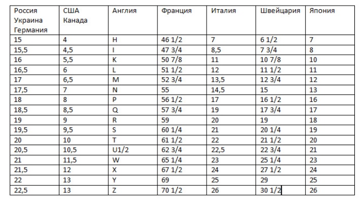 In previous cases, using elementary school formulas, it is easy to transfer the size from one system to another. However, once in the British jewelry store, to associate their scale with the usual quickly will not work. The English indicate the size of the rings in letters.