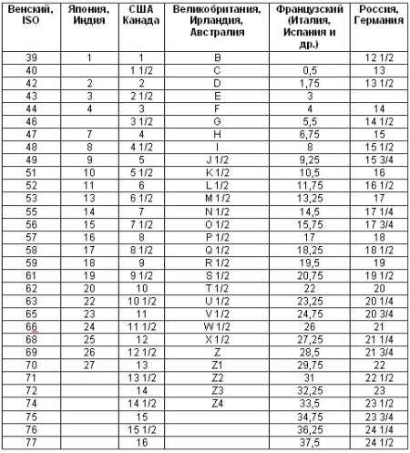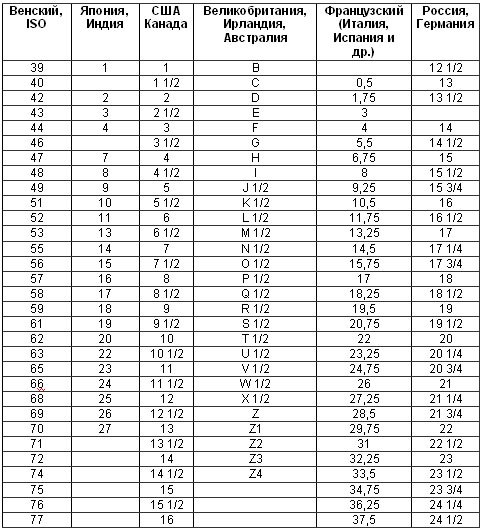 In order not to resort to calculations, it is most reliable to use the table. This is a special dimensional grid, which contains the main size scales. To understand it is not difficult. The main thing to determine the size of the ring in accordance with the usual system.