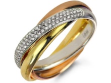 Such a decoration is made of several types of metal. Often craftsmen combine yellow, white and red gold in one piece of jewelry using interesting shapes of details. These three colors are the personification of love, friendship and loyalty. If you like to mix different styles in clothes, then this option will be a great solution.