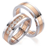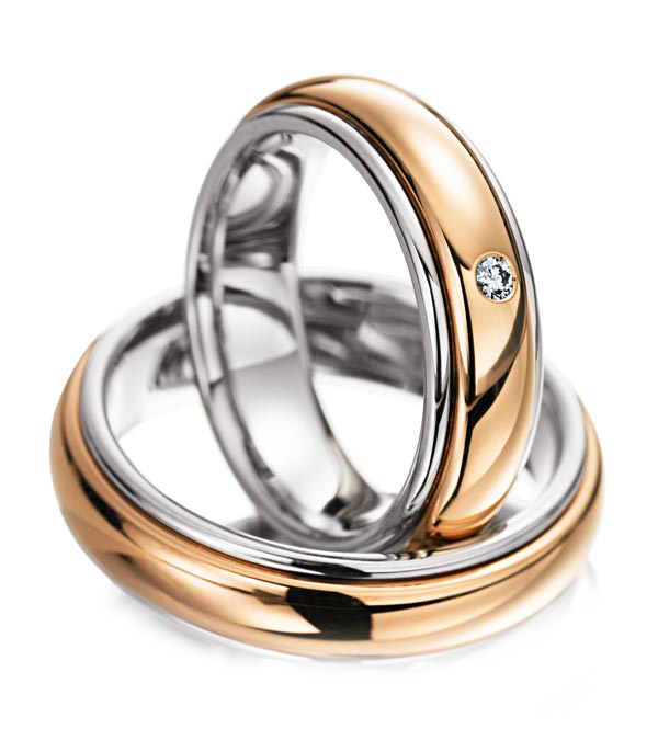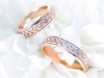 Pink-yellow models are characterized by the presence of two types of gold - yellow and matte pink. Rings of this type are usually wide and convex, with internal yellow color and external pink. The combination of material looks interesting, in addition, it is very durable.