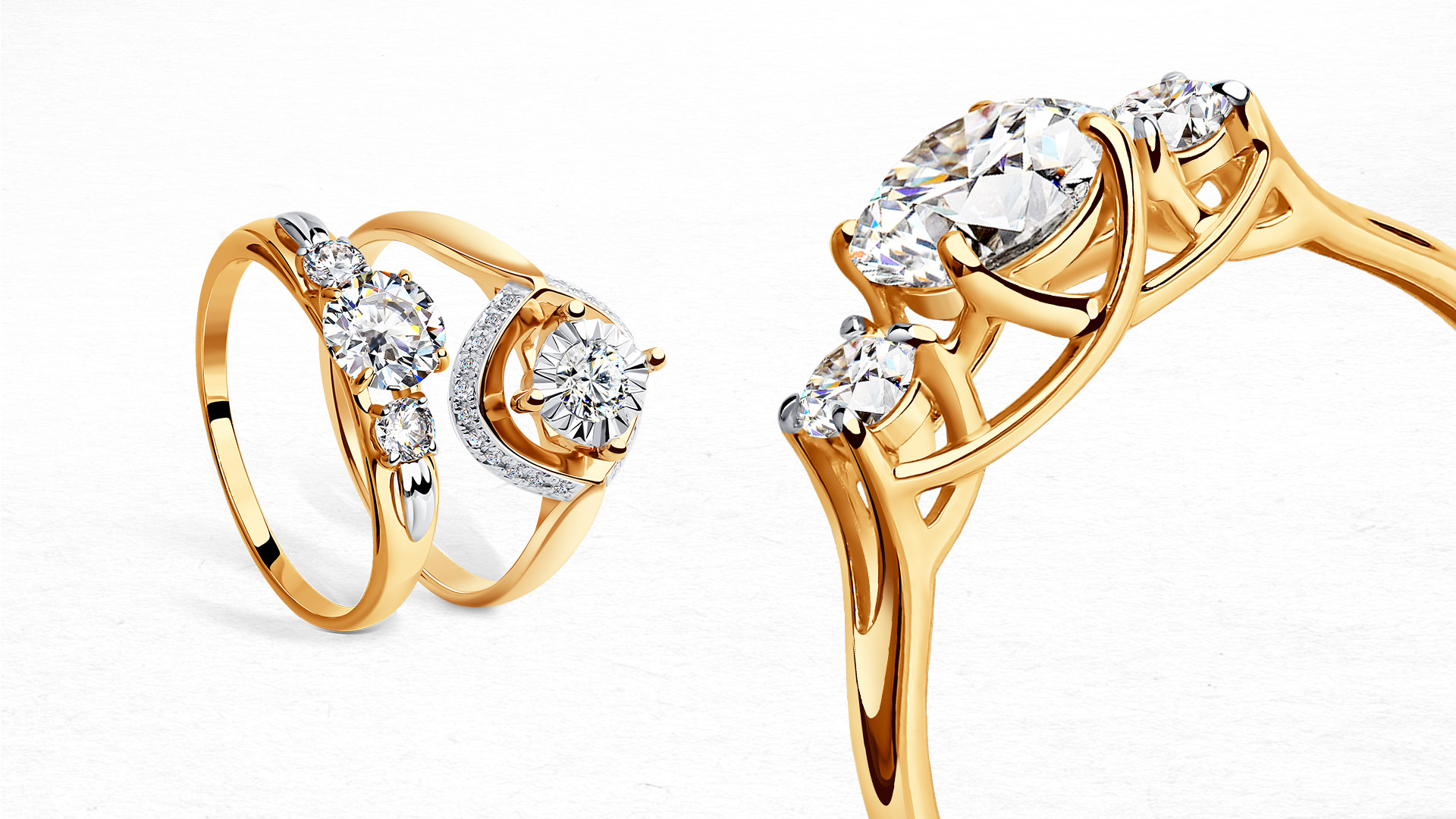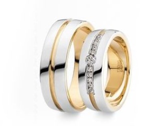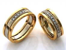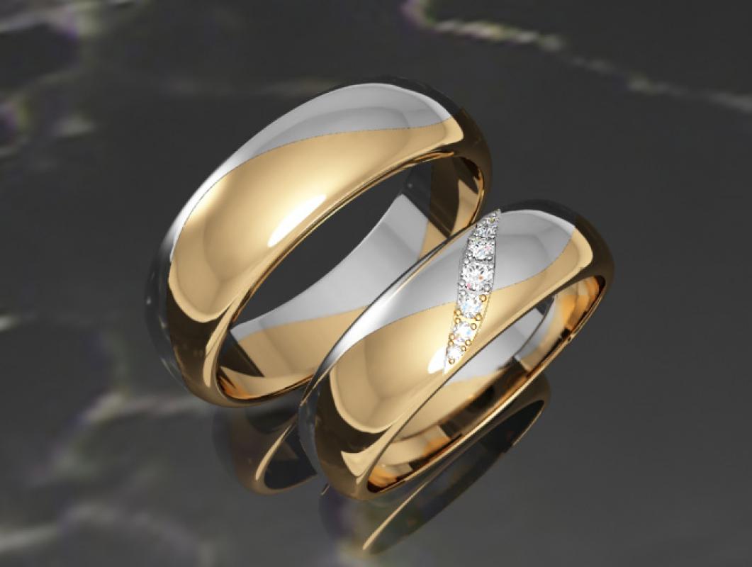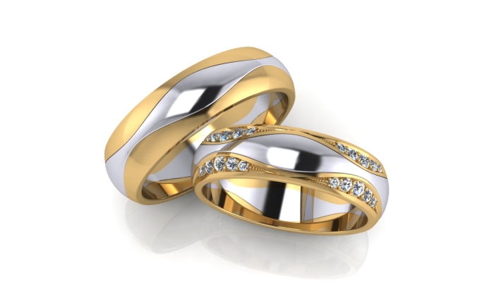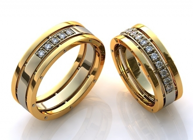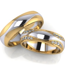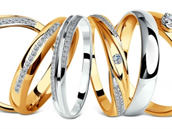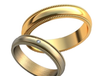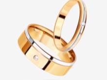 The yellow-white appearance of the rings is a convex model in combination with almost invisible faces. In the manufacture of such products jewelers use yellow and white gold. The decoration looks original - one half is yellow, and the second is silver. Sometimes there are models with the addition of other types of gold.