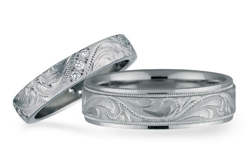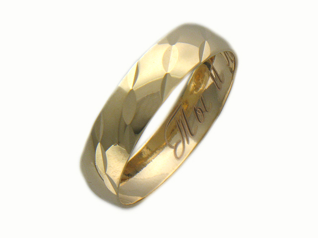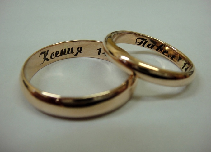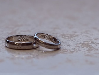 One of the easiest methods to add individuality to an ornament is engraving. Usually the master makes it on the inner surface of the ringlet, thereby hiding the inscription from prying eyes. This may be the name of the spouse, a catch phrase about love, initials. Engraving is a great choice for those girls who appreciate simplicity and at the same time a highlight in jewelry.