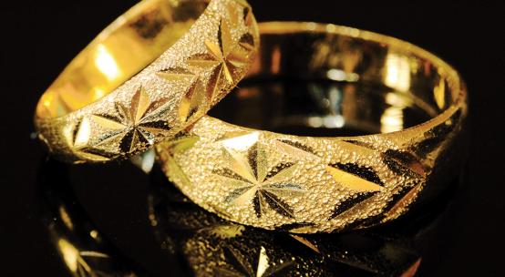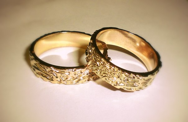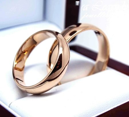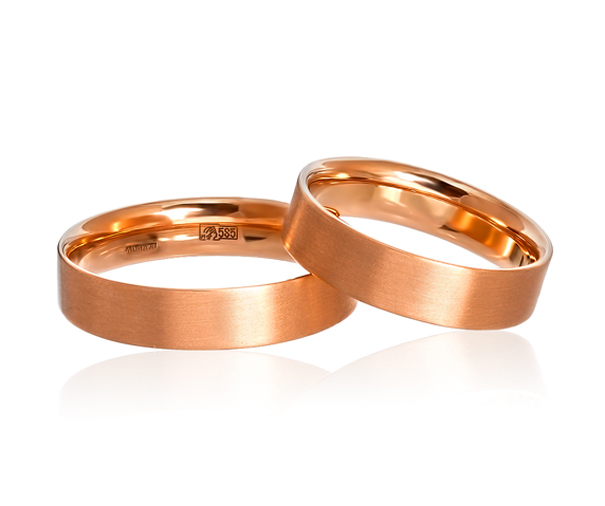 Gold is a classic material for making wedding rings. You can find not only the standard yellow hue, but also red, pinkish, white gold.
