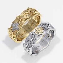 Models of rings with a diamond facet do not have a decor in the form of stones, but are decorated in a rather curious way. The surface of the ring has many shallow notches, representing a pattern. Notches are applied using special diamond cutters with a particularly sharp tip, so the technique has a corresponding name.