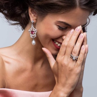 Among the decor there are quite a few features that are reflected in the appearance of the product. Diamonds are the most popular among the jewels that decorate rings.