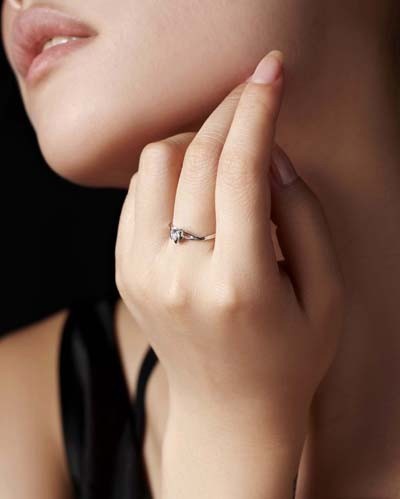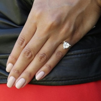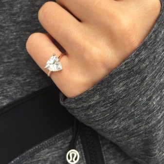 Most often, in the singular, a diamond is used to decorate an engagement ring. The most common in such variants are stones of 0.5 and 1.6 carats. They look rather restrained and neatly decorated with a ladies finger.