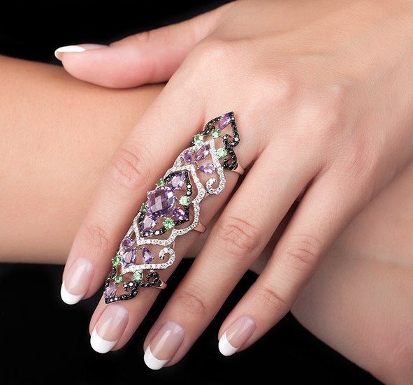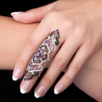 On the slim female fingers look very nice long models of rings, which are located along one or two phalanges of the finger, or along its entire length. The long model may seem inconvenient, but only at first glance, since it is equipped with special mechanisms that allow you to safely bend your finger.