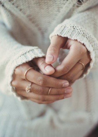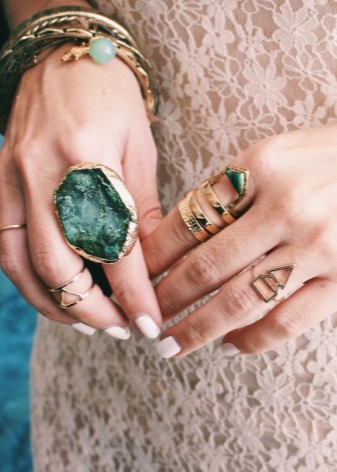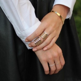 In addition, some external data should be taken into account when choosing: a narrow ring with a vertically extended decor will suit a girl with small fingers, and large rings with asymmetric decor of different shapes will suit the young ladies with full handles.