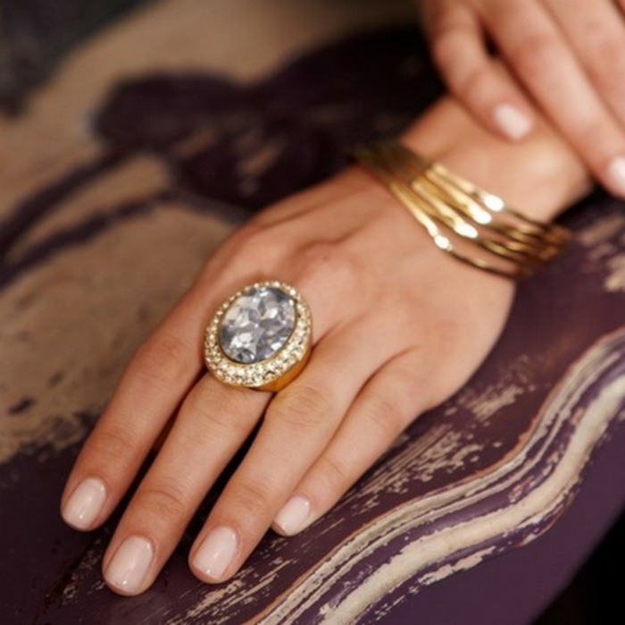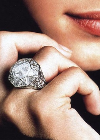 The ring with rock crystal looks very beautiful, which from afar can easily be confused with a diamond, if not for its impressive size and differences in the number of faces that the diamond has more.