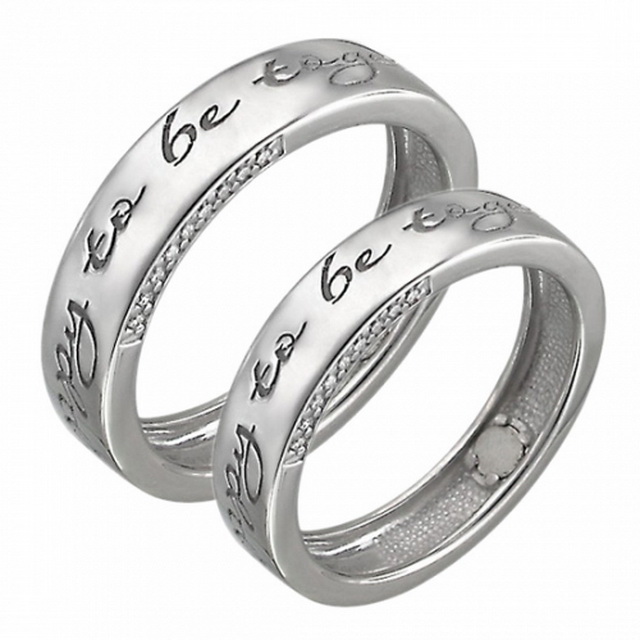 Popular pair of rings with the same appearance, which feature different inscriptions. In the manufacture of such handmade products, the customer himself can designate the inscription that will need to be applied to the surface of the ring.