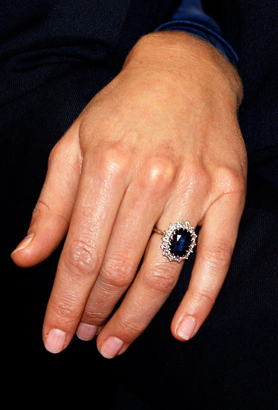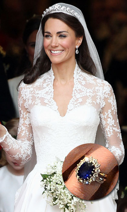 - Princess Diana's ring with large sapphire, a faceted scattering of small diamonds, is now emblazoned on Kate Middleton's elegant finger.