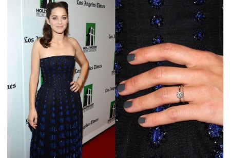 - Groom Marion Cotillard presented his beloved with a small, but very beautiful ring with a diamond in honor of their engagement.