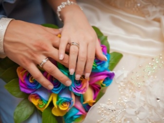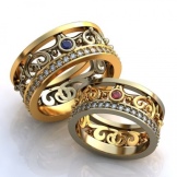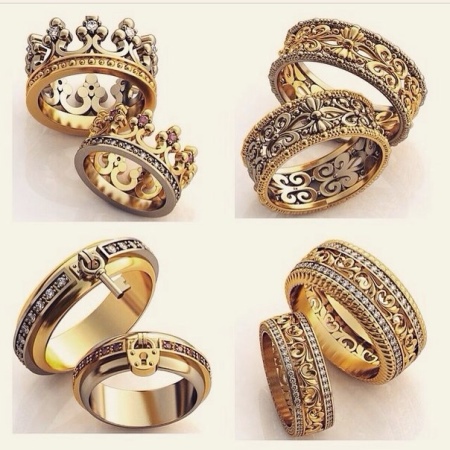 To create a combination of rings use a variety of materials, sometimes in their ingenuity, even moving away from the canon to use only precious metals. Such decorations are made to order for newlyweds who wish to capture the uniqueness of their couple in the decoration, which will remain with them for life.