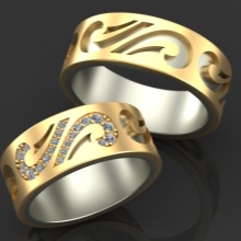 Above such an ornament as a wedding ring, time has no power; it is an eternal symbol of married couples. Designers this gives the opportunity from year to year to invent all new and new models. The combination of several materials allows you to play with lines and shapes, creating masterpieces of jewelry.