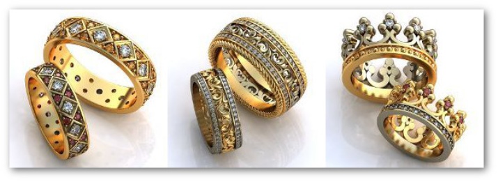 In addition to the standard form, they can be a patterned wreath of different types of metal, for example, two or three types of gold.