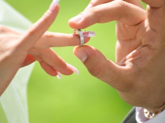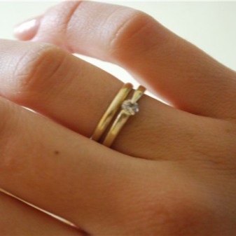 Before the marriage ceremony, the ladies wear jewelry on the ring finger of the right hand, and after marriage they change their clothes on the left. Some brides do otherwise: they simply put the engagement ring on the engagement ring. In this tandem, they spend a wedding celebration and a long time after the holiday. But this option is not the most successful, as it can cause damage to accessories and discomfort during wear.