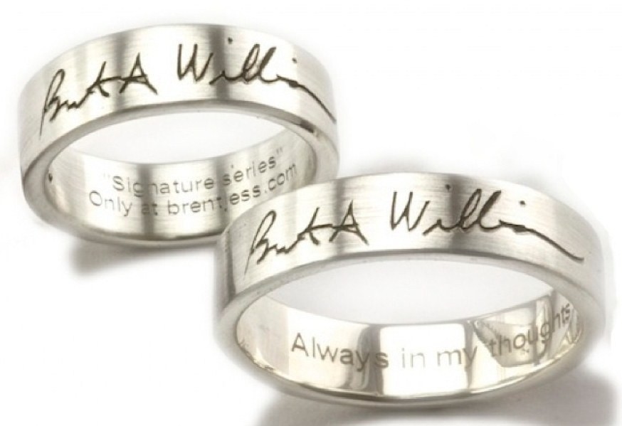 - Actual today engraving. Not so long ago they were applied to the inner part of the ring, but today such elements on the outer surface are quite acceptable. This may be the name of a loved one or touching phrases: "Together forever," "Love forever."